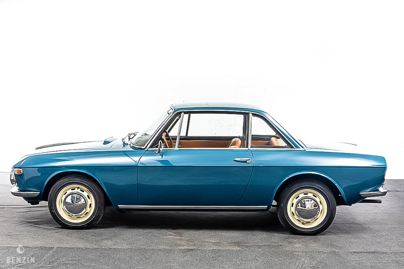 On the outside, this Lancia Fulvia S1 is in excellent condition. The paint in its original "Mendoza blue" color looks very good and shows no noticeable defects. The bodywork is said to be free of corrosion. The car has steel doors. The seals and moldings are in very good condition, as are the headlights and windows. The seller indicates that the car is completely original on the outside.