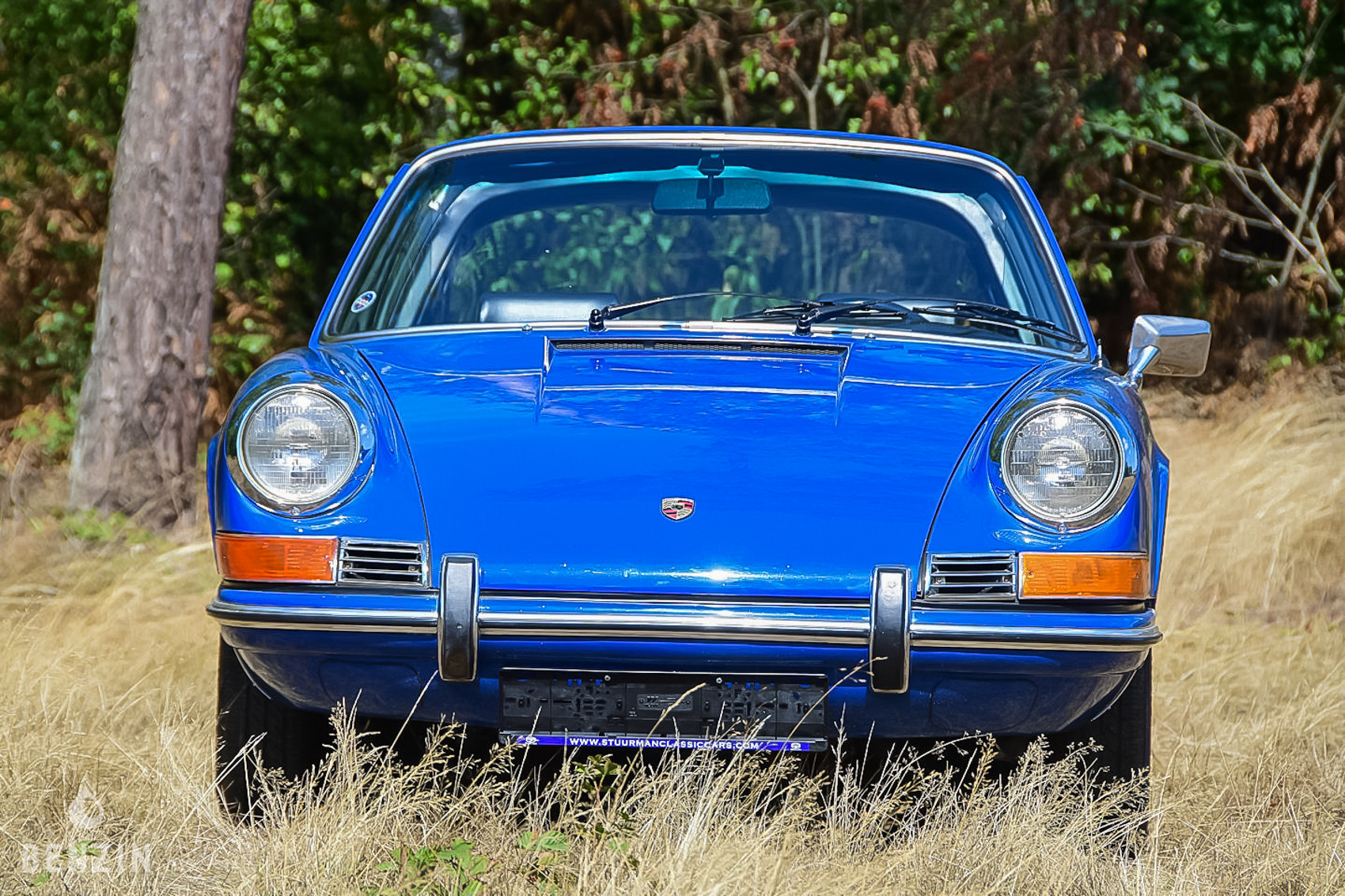 On the outside, the car is in very good condition. The paint in its Ossi Blue shade has no major defects. The seller indicates that the car is free of rust. The exterior plastics and seals are in good condition, as are the headlights. The Targa roof is in very good condition.
