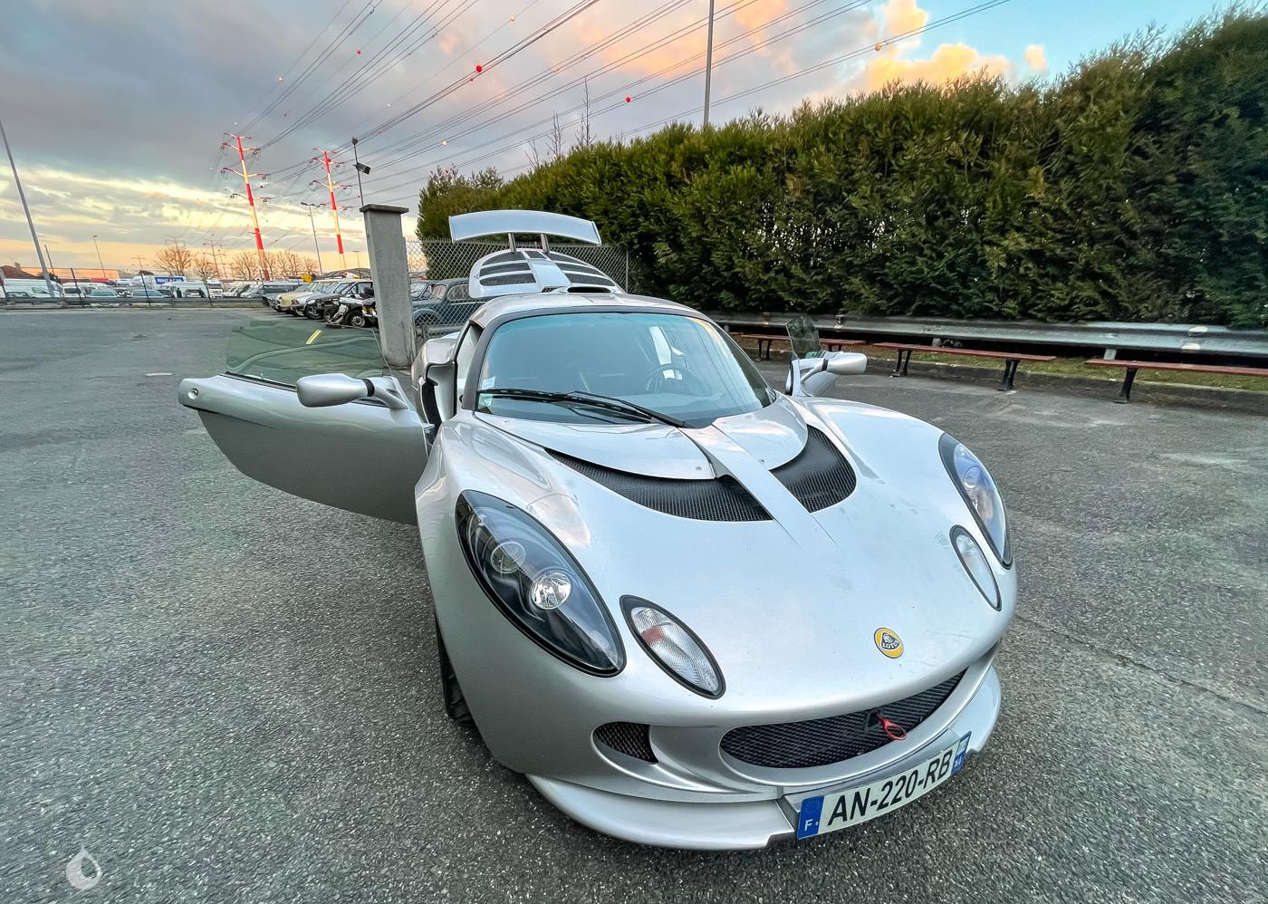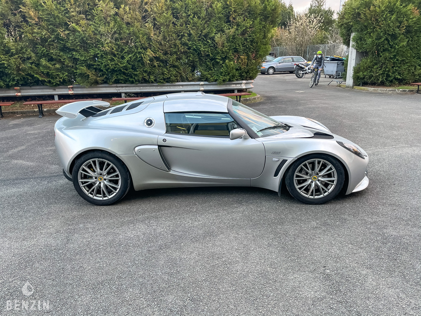 On the outside, the car is in very good condition. The original paint in its grey color has only a few visible defects in the gallery. Only the front blade has been repainted. The front and both skirts show some stone chips, both skirts are protected by the original Lotus plastic. The exterior plastics and seals are in good condition. The headlights fog up when it rains, but they are in apparently good condition. The seller indicates that this Lotus is free of corrosion. He also states that the car is completely original on the outside.