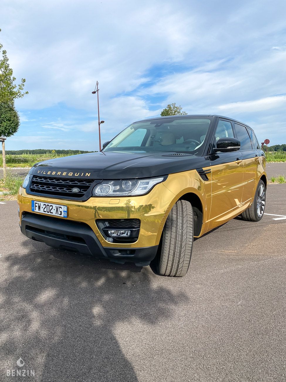 Outside, the car is in very good condition. The original white paint has been covered by a black and gold covering slightly scratched on the left side (visible in the gallery). The exterior plastics and seals are in good condition, as are the headlights. The seller indicates that this Range Rover is free of corrosion.