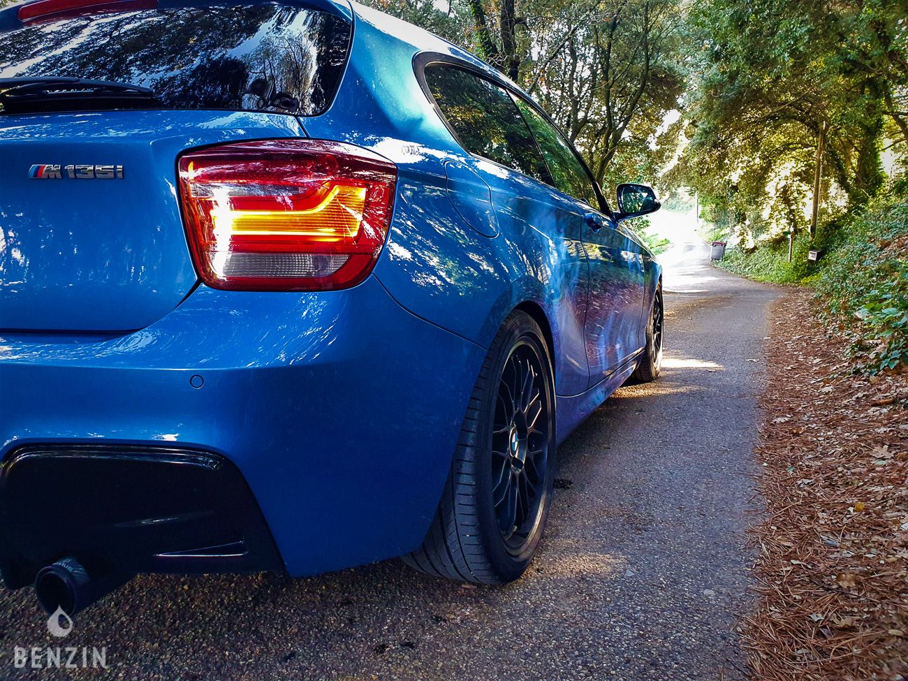 On the outside, the car is in very good condition. The paint in its "Estoril Blue Metallic" color has only a few visible defects in the gallery. The exterior plastics and seals are in good condition, as well as the headlights. It has a Shadow Line. The seller indicates that the chassis of this M135 is sound, pictures of the undercarriage are available in the gallery.