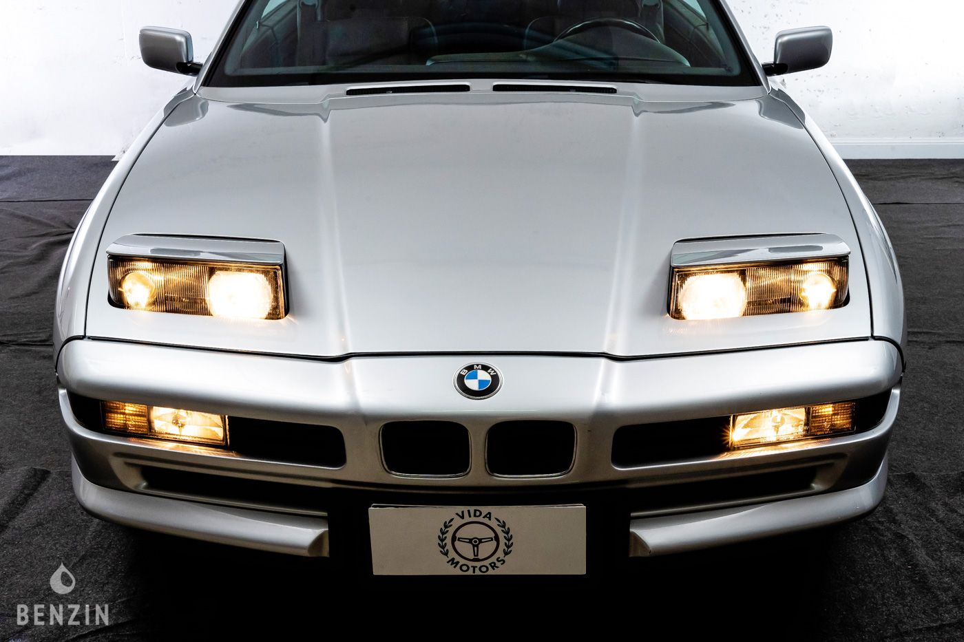 On the outside, the car is in very good condition. The original paint in its grey color (sterlingsilber metallic) has only very few visible defects in the gallery. The exterior plastics and seals are in good condition, as well as the headlights. The seller indicates that the chassis of this BMW 850i is sound, pictures of the undercarriage are visible in the gallery.
