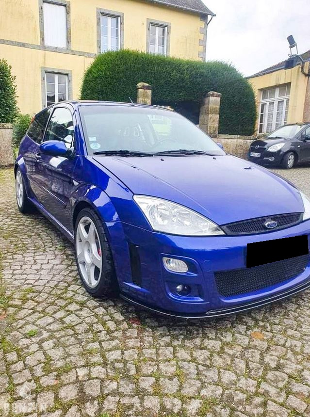 On the outside, the car is in very good condition. The paint in its Imperial Blue color has only very few visible defects in the gallery. The exterior plastics and seals are in good condition, as are the headlights. The seller indicates that the chassis of this Focus RS is sound, pictures of the undercarriage are available in the gallery.