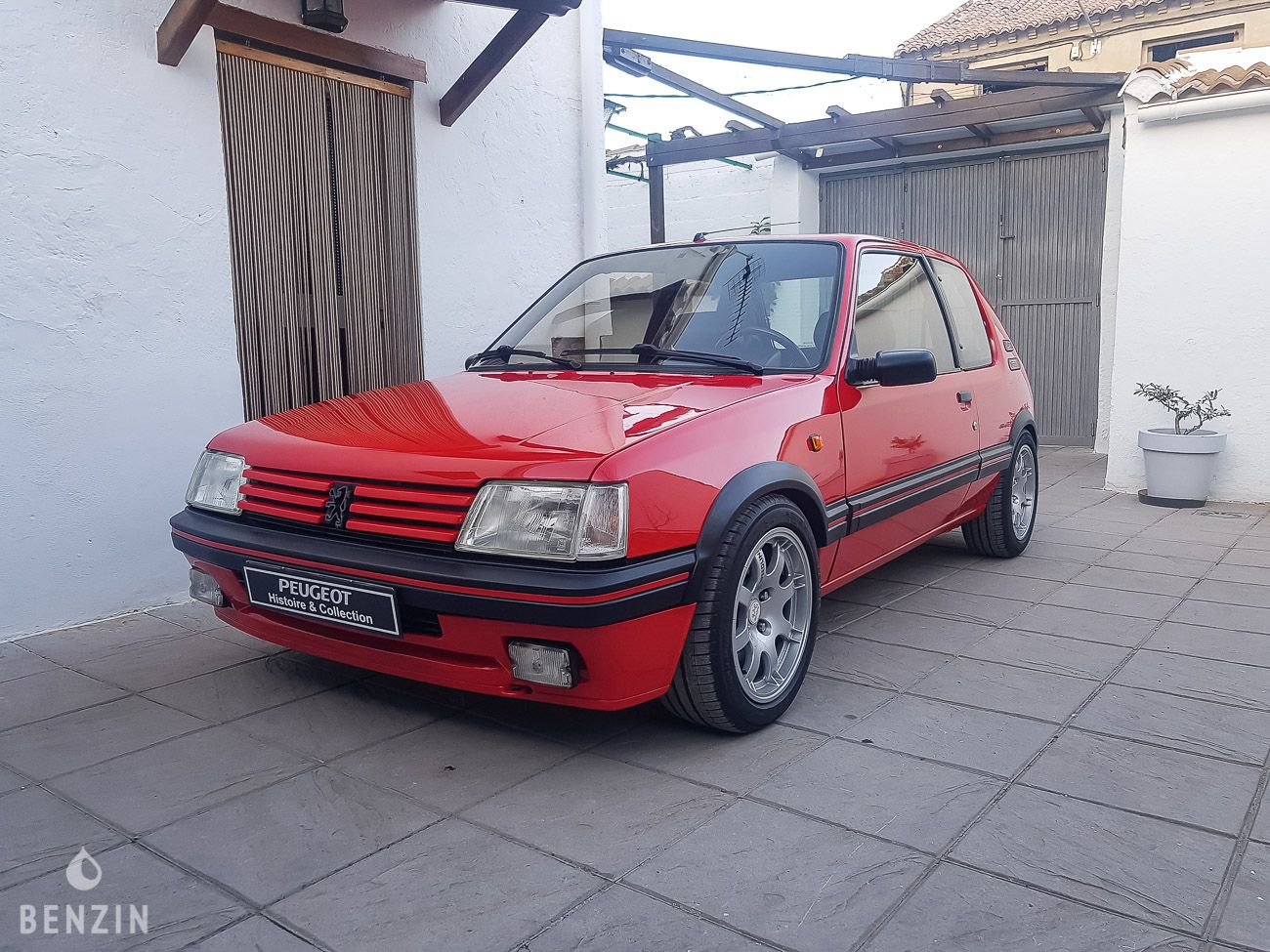 On the outside, the car is in very good condition. The paint in its Vallelunga red color has only very few defects visible in the gallery. Plastics and exterior seals are in good condition, as well as the headlights. The seller indicates that the chassis of this 205 GTI is sound, pictures of the undercarriage are available in the gallery.