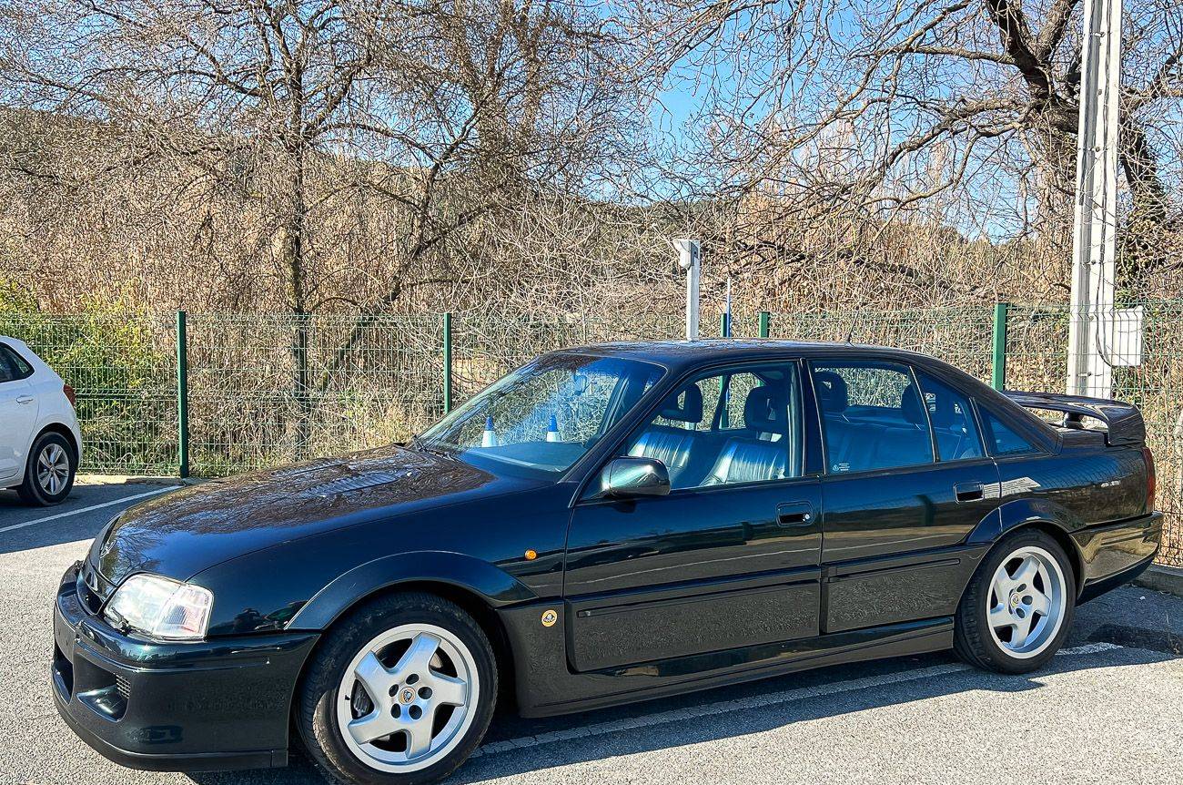 On the outside, the car is in very good condition. The paint in its green color has only very few visible defects in the gallery. The exterior plastics and seals are in good condition, as are the headlights. The seller indicates that the chassis of this Omega Lotus is sound, pictures of the undercarriage are available in the gallery.