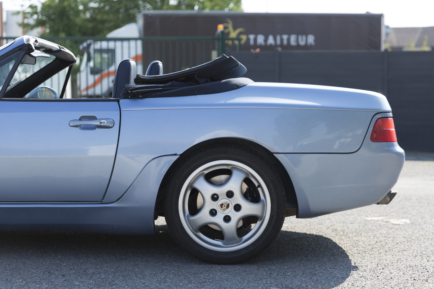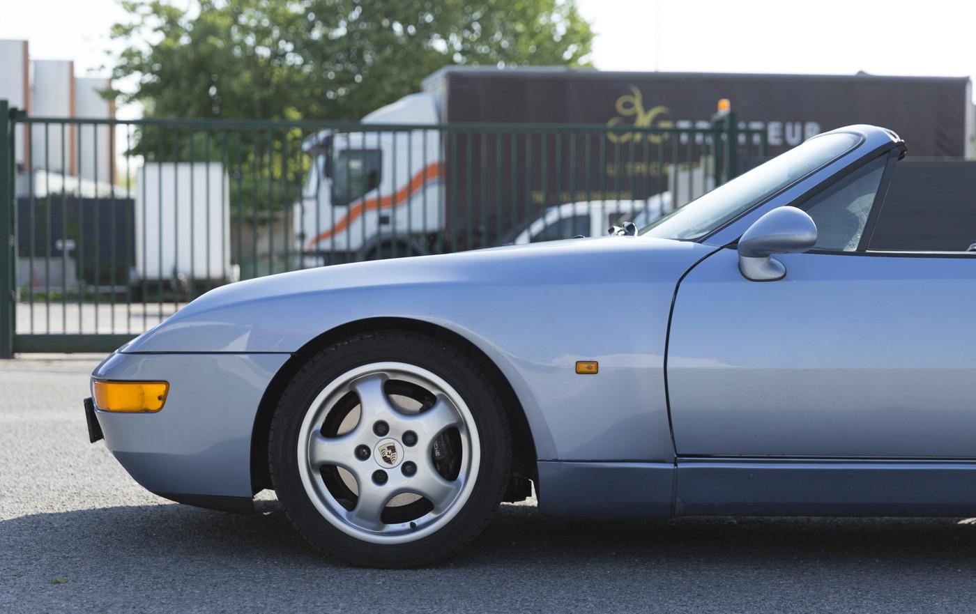 Externally, the car is in excellent and strictly original condition. The original horizon blue metallic paint has never been redone and looks great considering its age. The only notable defects are a slight scratch on the rear trunk and a small rust spot on the passenger door (visible in the gallery). The joints are in good condition and the alignments are in accordance with the standards of the time. The electric soft top is functional and waterproof.
