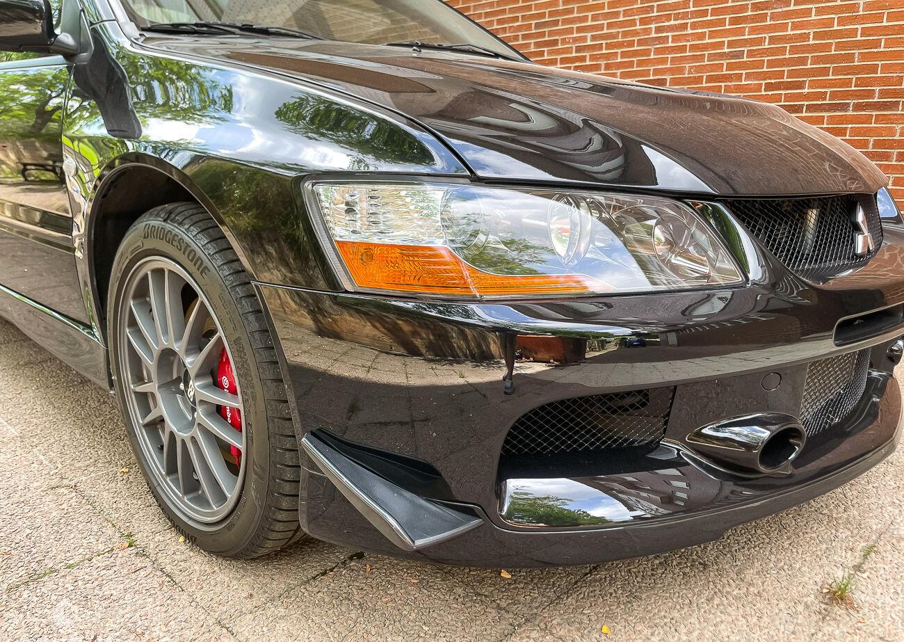 On the outside, the car is in good condition. The paint in its black color has only very few defects visible in the gallery. The paint has benefited from a ceramic treatment. The exterior plastics and seals are in good condition, as well as the headlights. The seller indicates that the chassis of this Lancer Evo 9 is sound, pictures of the undercarriage are available in the gallery.