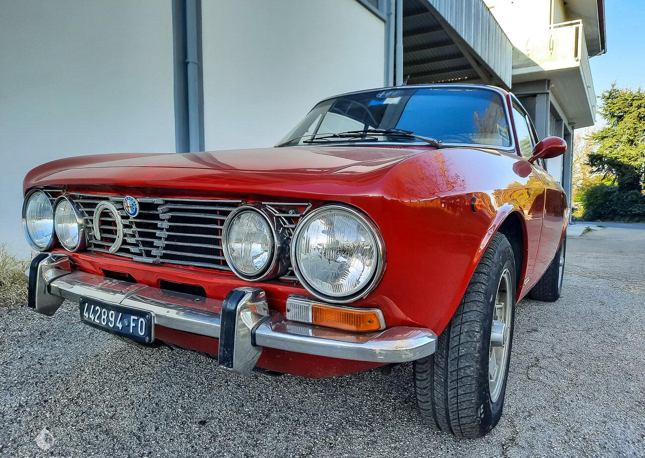 On the exterior, the seller states that the car is currently mounted in a "GT 1750" look. The paint in its red shade has a few flaws visible in the gallery. The chrome is in good condition, as are the headlights. Pictures of the undercarriage are available in the gallery. The seller specifies that he has the parts to reassemble the car in its original aspect (rear lights, grille, distinctive badge).