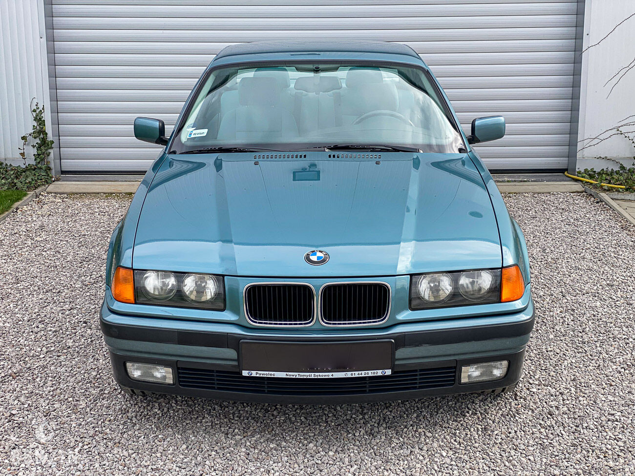 The interior is in very good condition. The green cloth upholstery has no tears or holes but shows slight wear. The steering wheel and the dashboard are in very good condition. The on-board instrumentation and the electrical equipment are working normally. This car has the following equipment: - S240A Leather steering wheel with airbag - S243A airbag for the front passenger - S305A central locking - S423A velor floor mats - S428A warning triangle - S473A front armrest - S488A electric lumbar support driver and passenger - S498A rear mechanical head restraints - S508A rear parking sensors (PDC) - S510A headlight range control - S530A air conditioning - S556A outdoor temperature display - S651A BMW reverse RDS radio