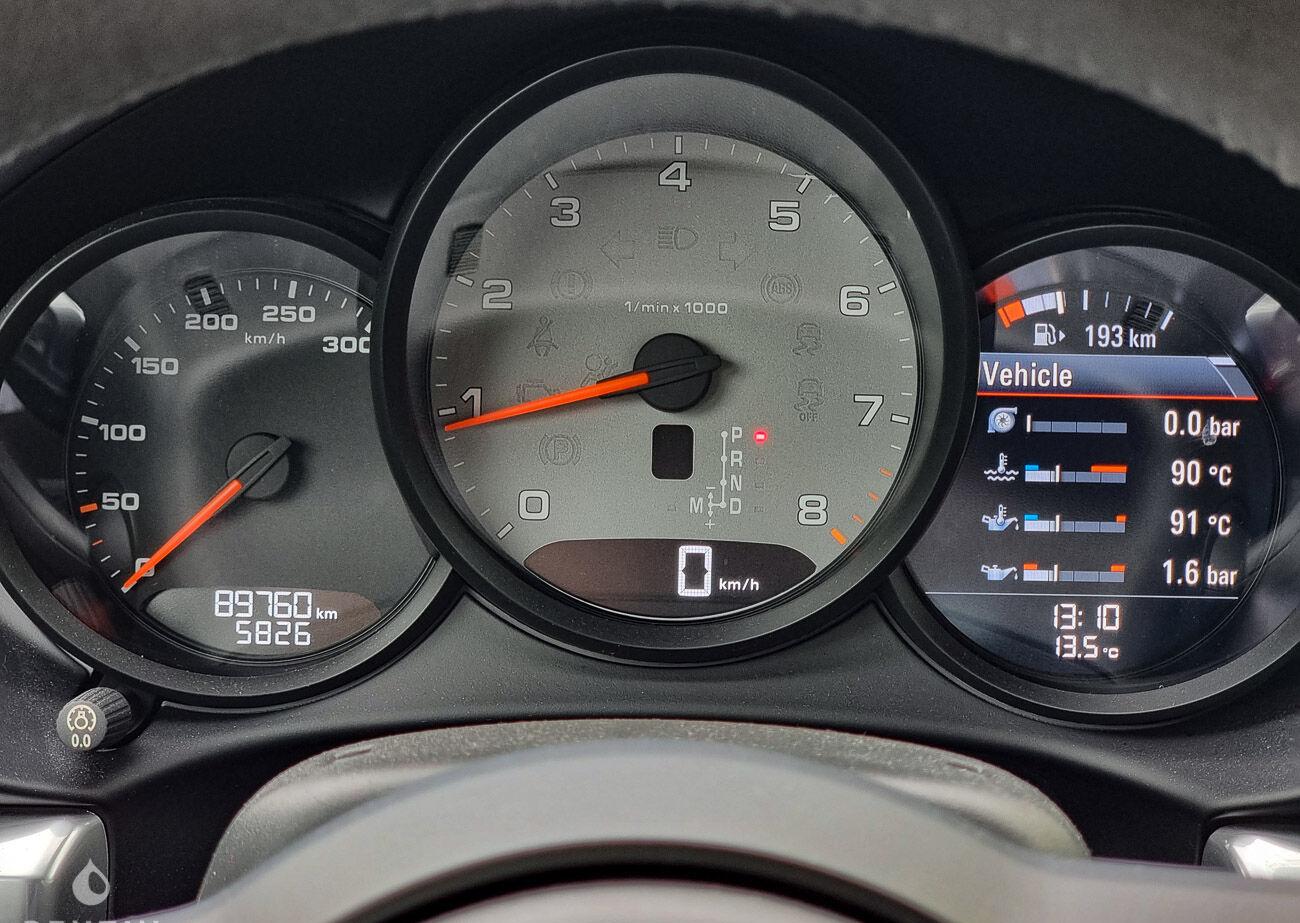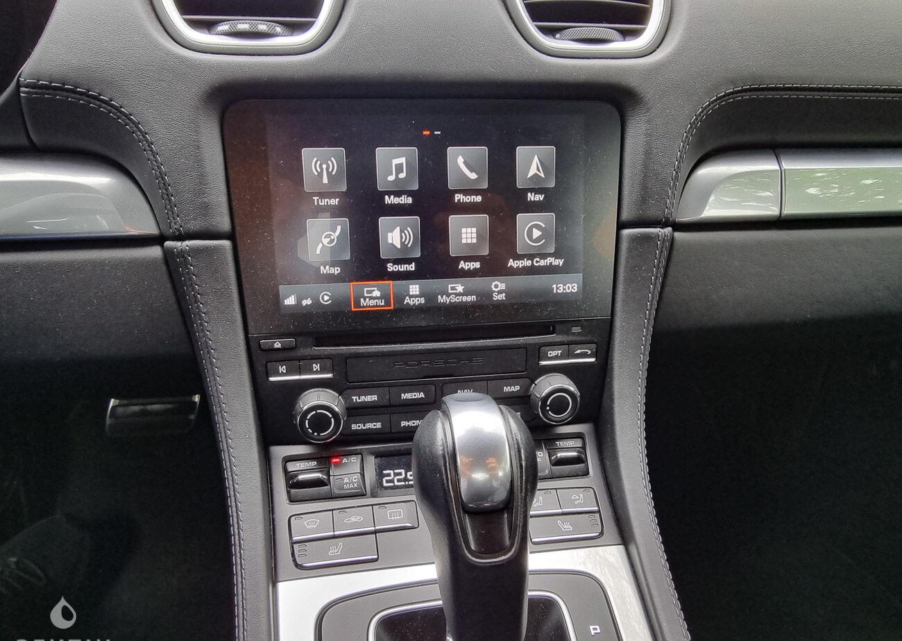 The interior is in good condition. The black leather upholstery has no tears or holes but shows slight signs of wear. The steering wheel and dashboard are in good condition. The on-board instrumentation and electrical equipment are in normal working order. This Porsche has the following equipment: - Model Designation Painted - LED Headlights incl. Porsche Dynamic Light System Plus (PDLS+) - ParkAssist (front and rear) with reversing camera - Windscreen with grey top-tint - Power Folding Exterior Mirrors - Headlight Cleaning System Covers in Deviated Exterior Color - Porsche Doppelkupplung (PDK) - Power Steering Plus - PASM Sport Suspension (20 mm Lower) - Sport Chrono Package - Sport Exhaust System incl. Sport Tailpipes in Black - 20" 911 Turbo Wheels - Cruise control - Speed limit display - Automatically Dimming Mirrors with Integrated Rain Sensor - Light Design Package - GT Sport Steering Wheel - Heated Multifunction Steering Wheel - Alarm system with interior surveillance - Adaptive Sport Seats Plus (18-way) with Memory Package - 2-Zone Automatic Climate Control - Seat Heating (Front) - Smoking Package - Floor mats - Vehicle Key Painted and Key Pouch in Leather - Interior Leather - Porsche Crest on Headrests - Voice Control - Navigation Module for Porsche Communication Management (PCM) - BOSEĀ® Surround Sound System - Connect Plus - 64-litre fuel tank - Sports style pedals - Wheels painted in Silver colour - Roof lining in fabric - AppleĀ® CarPlay - Online Services Plus