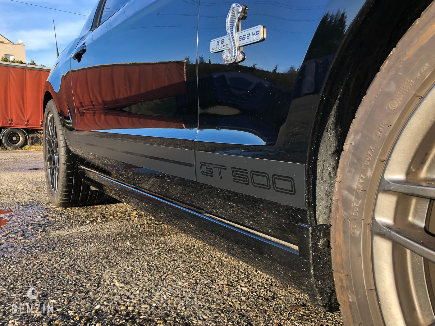 On the outside, this Shelby GT500 is in excellent condition. The original black paint with matte black stripes shows no flaws. The bodywork also shows no dents whatsoever. The car has never been damaged and the body alignments are excellent.