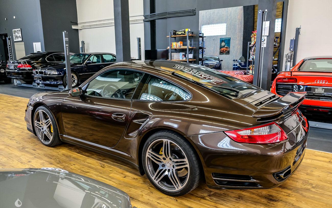 The interior is in good condition. The brown leather upholstery has no tears or holes, but shows slight signs of wear. The steering wheel and dashboard are in good condition. On-board instrumentation and electrical equipment are in normal working order. This 997 turbo comes with the following options: