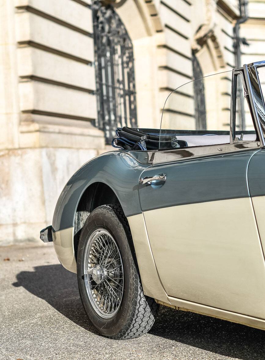 Externally, the car is in very good condition. The body and bodyshell have been stripped, restored and repainted in a two-tone "Ice Blue" hue with beige sides. Only a few defects are visible in the gallery. The seller notes the presence of slight blisters on the rear trunk. Plastics, chrome and exterior seals were replaced or restored in 2019, as were the headlights and soft top. Photos of the underbody are available in the gallery, and the expert's report notes no visible traces of impact or perforating corrosion.
