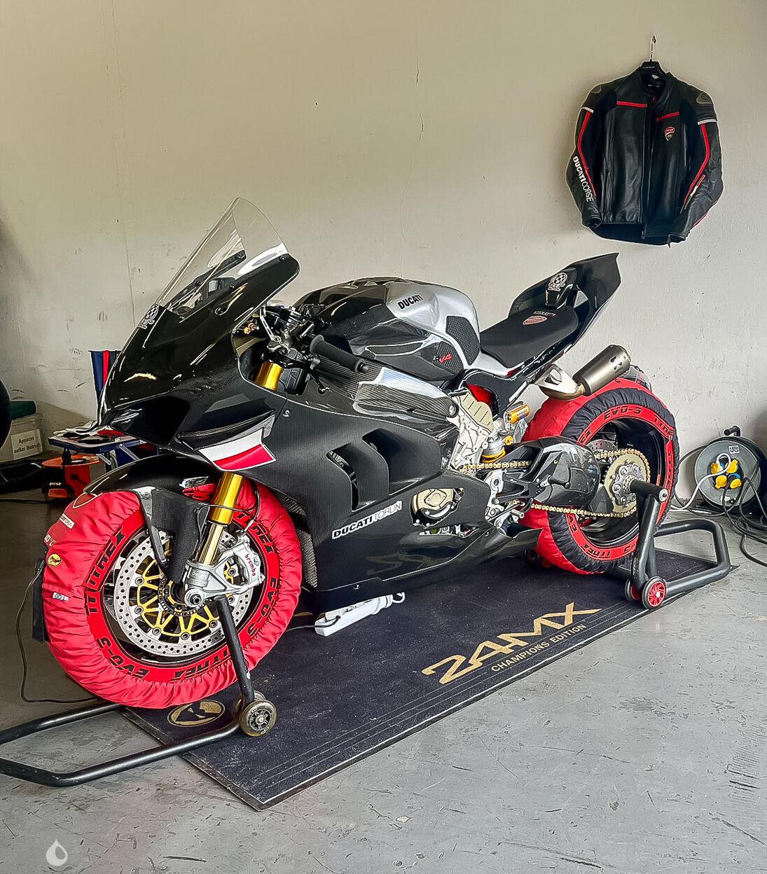 The 998cc 4-cylinder developed 221hp when it left the factory. The seller states that the mechanics work normally, as does the 6-speed gearbox. This Panigale has undergone extensive preparation for the track at Ducati's Toruń workshops in Poland, details of which are as follows: - Embrayage Carter sec- Akrapovic Evolution2 complete exhaust system- RACING PRO Cards- Ohlins front and rear suspension /FGK /GP TTX36 mod- Pistons de freins Brembo and titanium - Sprinter Carbon Filters - Ohlins steering damper- Set of Fullsix carbon fairings- Brembo Supersport brake discs- Guidon "Spider", demi guidon IMA réglable- Lighter saddle- Quickshifter Racing Translogic- Fullsix Carbon frame and swingarm covers- WRS switches- Jet Prime switch- DDA GPS Lap Timer and data analyser The bike recently underwent a standard service (oil change, inspection and brake pads).