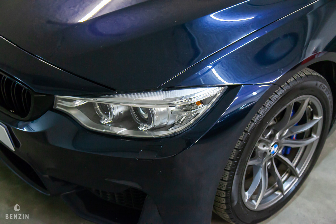 On the outside, this f82 is in excellent condition. The Azurite Blue paint presents very well, showing no major flaws. This M4 is equipped with the optional sunroof. The seller indicates that the car has had the left front fender, front bumper and left headlight replaced following a fender bender and that the work was done by a professional.