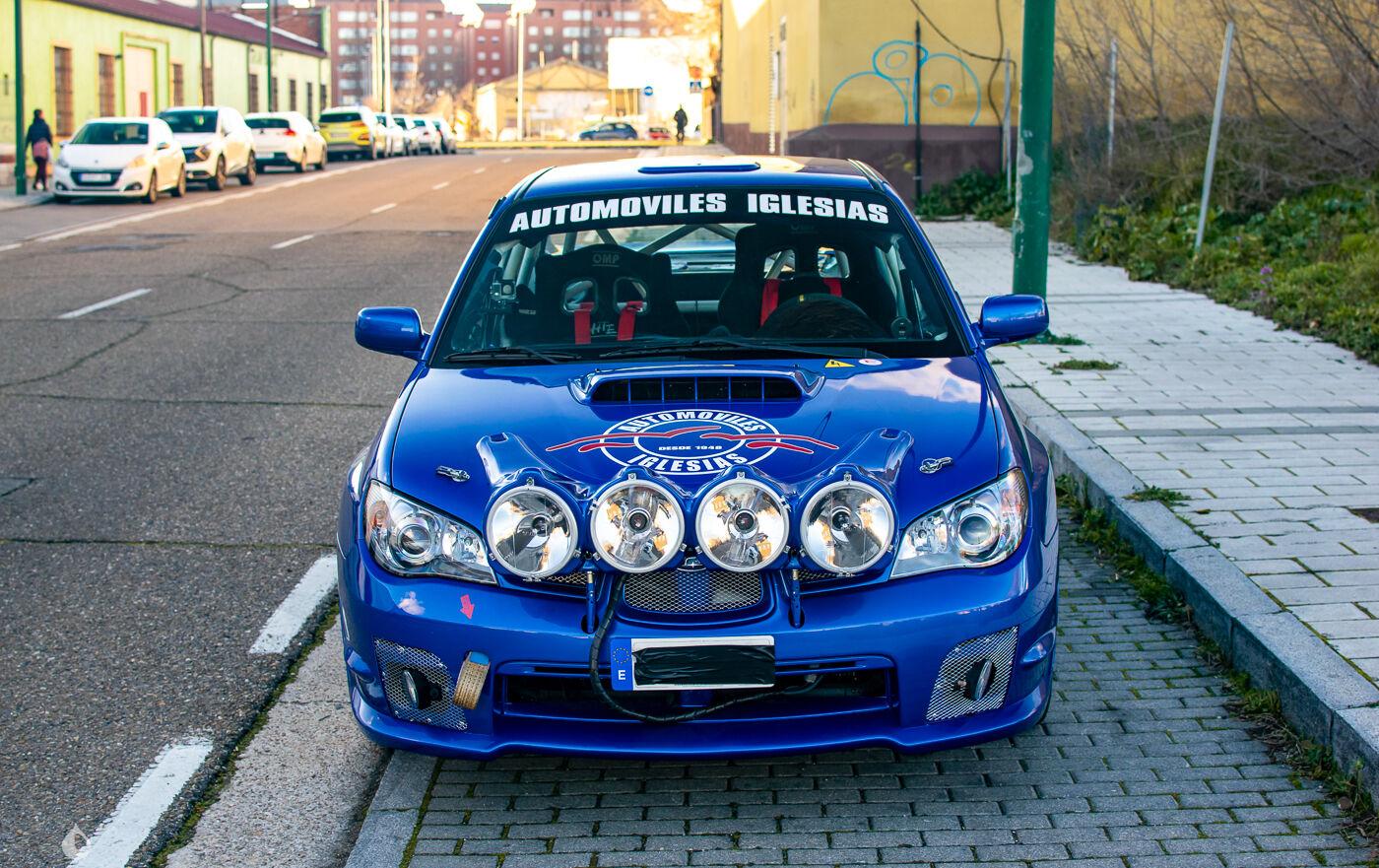 On the outside, the seller indicates that the vehicle is in good condition. Blue bodywork (World Rally Blue) has only a few visible defects in the gallery. Photos of the underpinnings are available in the gallery. The vehicle has long-range headlights.