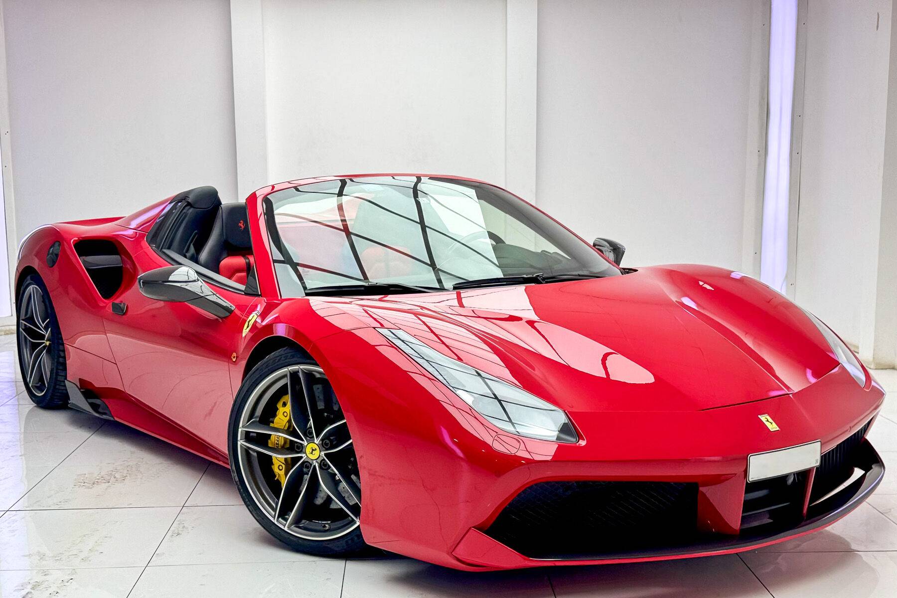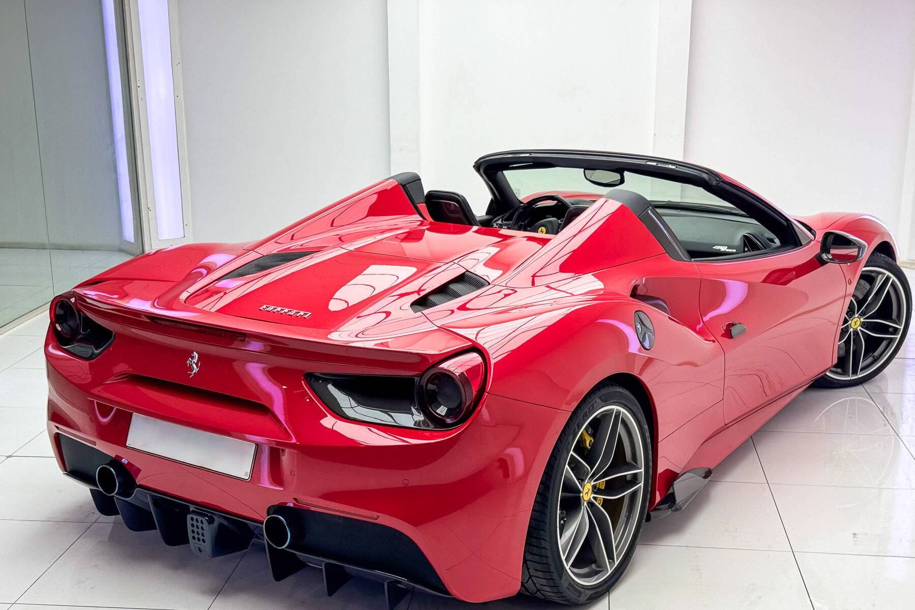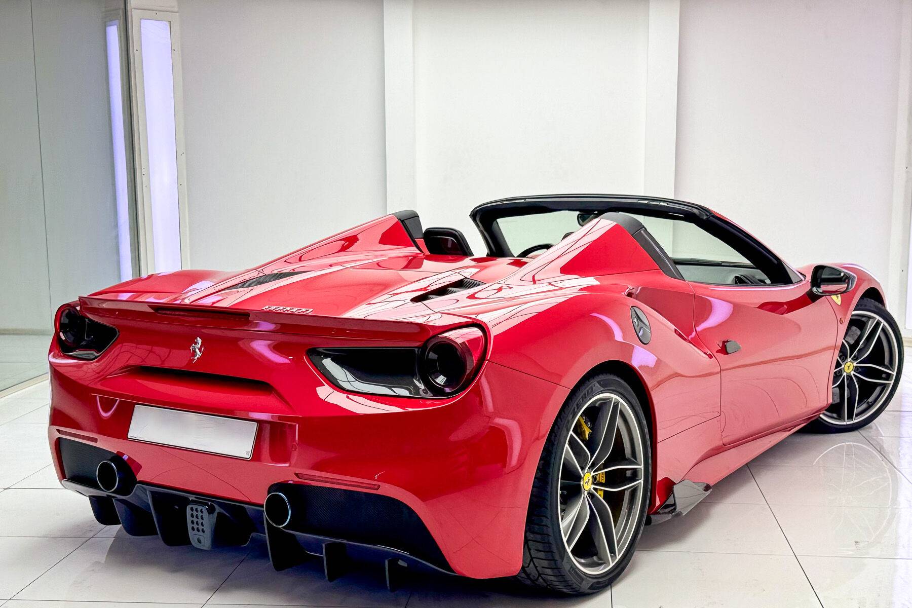 Inside, the seller says that the vehicle is in excellent condition. The black and red leather upholstery has no tears or holes. The steering wheel and dashboard are in very good condition. The on-board instrumentation and electrical equipment are in normal working order. This 488 spider comes with the following options: - Yellow stirrups- Goldrake Racing Seats- Perimeter radar- Exterior carbon pack- Interior carbon pack- 20' forged wheels- Premium Hifi system