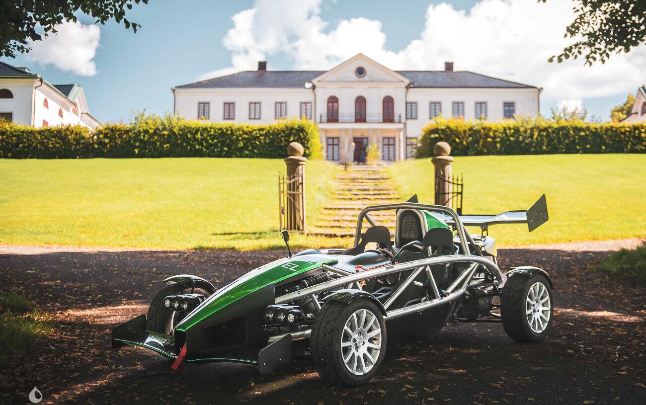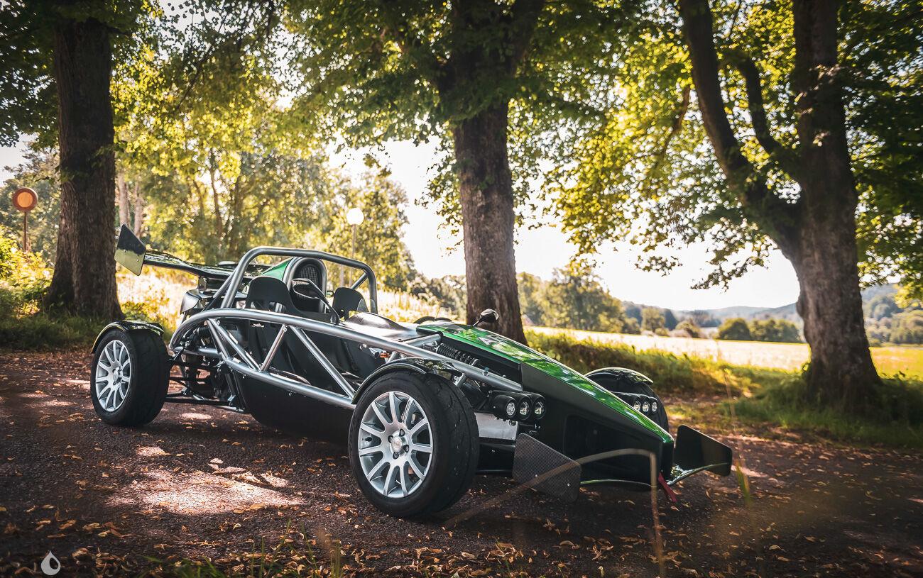 On the outside, the seller says that the vehicle is in good condition. The tubular chassis and green bodywork have only a few defects, which can be seen in the gallery. Photos of the underpinnings are available in the gallery. The seller states that the car is fitted with a carbon front blade and spoiler.