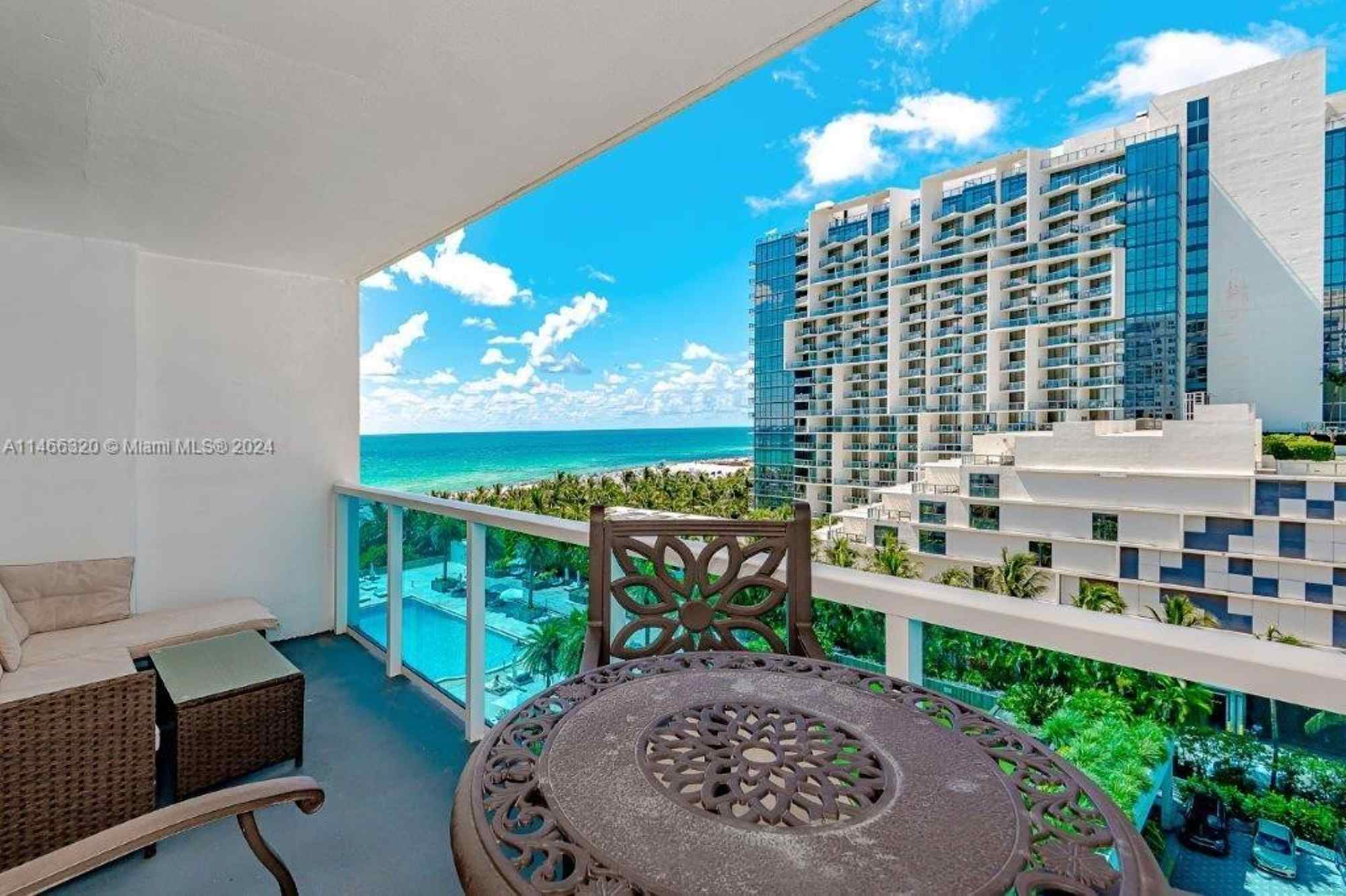 Garage, Fitness Center, Direct ocean view, Two balconies, Impact glass windows, Full-service luxury amenities, Heated pools, Jacuzzies, Poolside bar/cafe, 24 hr security