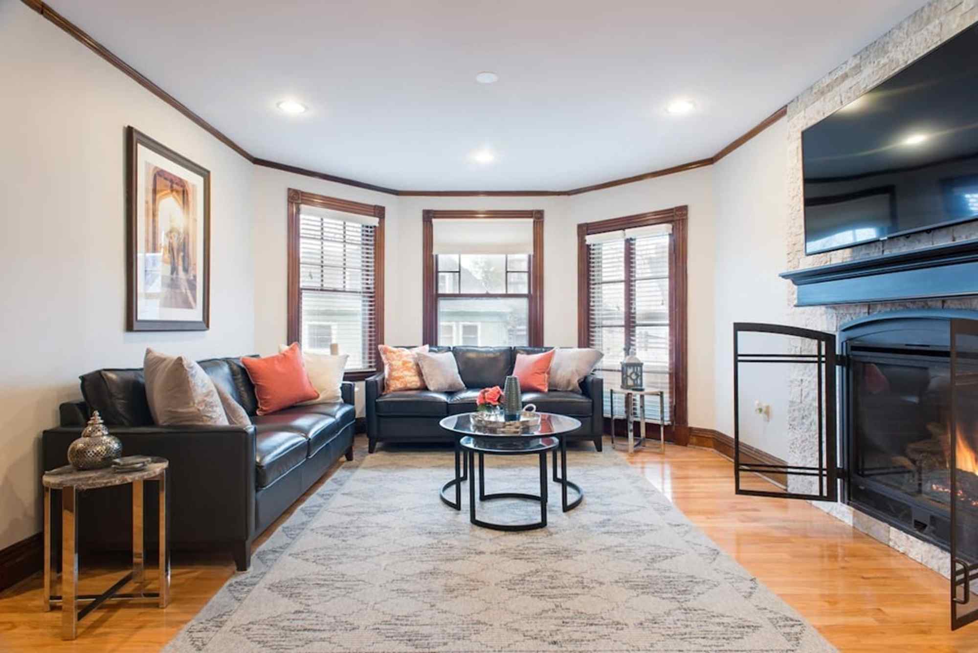 Outdoor parking, Gas fireplace, Air conditioning, Chef's kitchen, Italian marble baths, Renovation in 2011, Recessed lighting, Ample shopping nearby, Restaurants and bars, Red Line train access