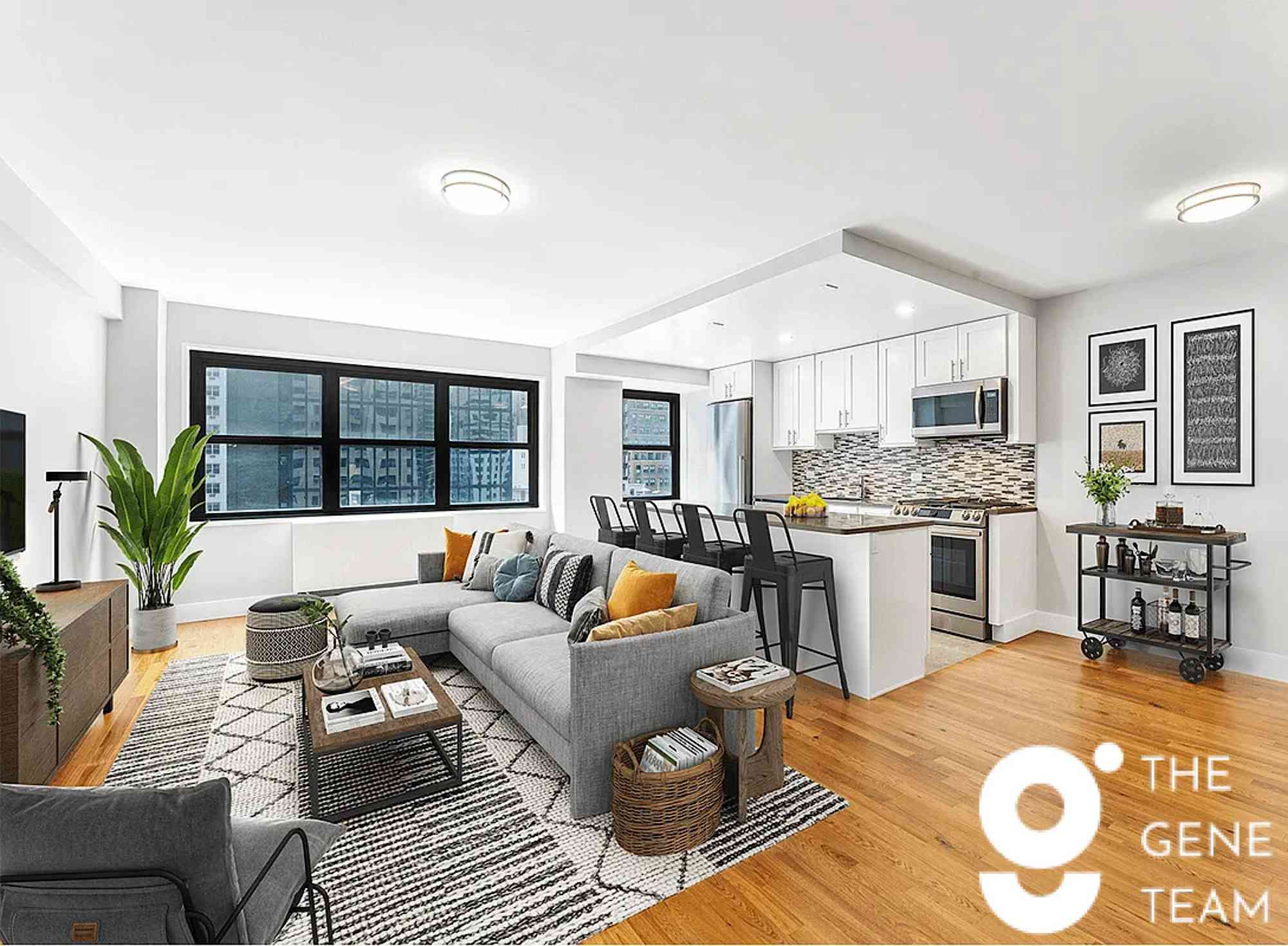 Empire State Building views, East River views, Manhattan skyline views, Triple exposure living area, Beautiful open kitchen, Fitness center, Yoga room, Door attendant, Pet friendly, Rooftop decks